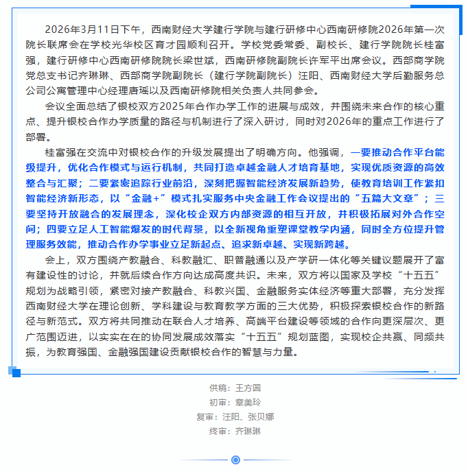 成人电影 建行学院与建行研修中心西南研修院召开2026年第一次院长联席会