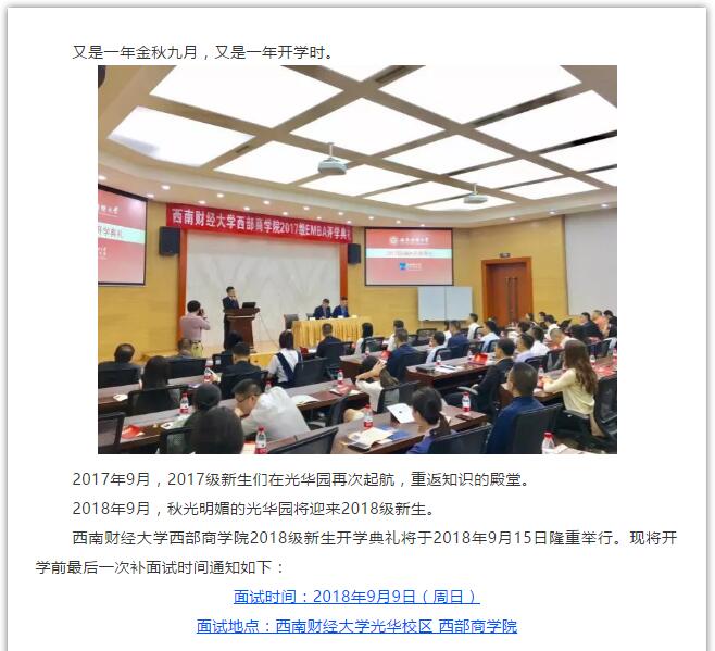 最后一次 面试通知‖西南财大成人电影 2018级高级工商管理课程班9月面试通知
